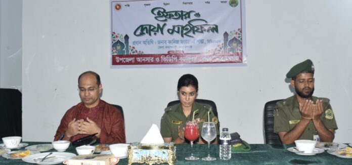 উপহার বিতরণ ও আলোচনা সভা শেষে দেশ ও জাতির কল্যাণ, বিশ্বশান্তি এবং আনসার বাহিনীর সার্বিক উন্নতি কামনা করে বিশেষ মোনাজাত পরিচালনা করা হয়। এরপর উপস্থিত অতিথি, আনসার ও ভিডিপি সদস্য এবং স্থানীয় সুধীজন একত্রে ইফতারে অংশগ্রহণ করেন। মহাপরিচালকের এমন উপহার পেয়ে উপস্থিত আনসার সদস্যদের মাঝে ব্যাপক আনন্দ ও উচ্ছ্বাস লক্ষ্য করা যায়।