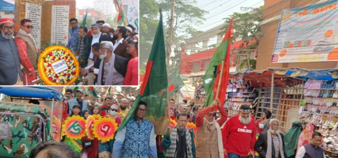 বিজয় র্যালিটি নগরীর প্রধান প্রধান সড়ক প্রদক্ষিণ শেষে চাষাঢ়া চত্বরে ১৯৭১ সালের মহান মুক্তিযুদ্ধে নিহত শহীদদের স্মরণে নির্মিত বিজয়স্তম্ভে ফুল দিয়ে শ্রদ্ধা নিবেদন করেন।