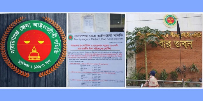 ২০২৬ সালের জন্য বাংলাদেশ বার কাউন্সিলের সনদ নবায়ন ফি এবং নারায়ণগঞ্জ জেলা আইনজীবী সমিতির বিভিন্ন তহবিলের নির্ধারিত ফি আগামী ২৭ জানুয়ারি ২০২৬ তারিখের মধ্যে জমা দেওয়ার জন্য বিজ্ঞ আইনজীবীদের প্রতি বিশেষভাবে অনুরোধ জানানো হয়েছে। নারায়ণগঞ্জ জেলা আইনজীবী সমিতির পক্ষ থেকে জারি করা এক বিজ্ঞপ্তিতে এই নির্দেশনা দেওয়া হয়।