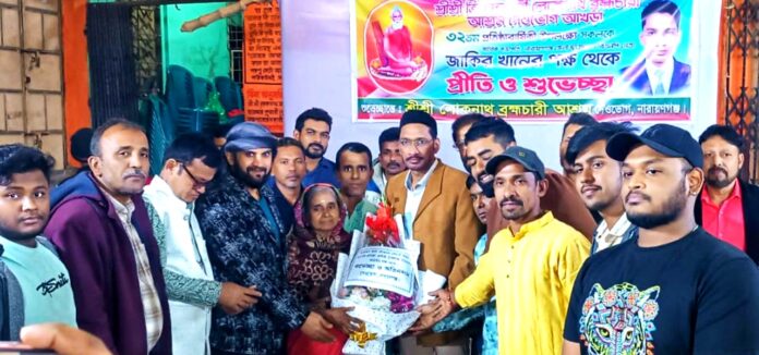 এসময় নারায়ণগঞ্জ জেলা ছাত্রদলের সাবেক সভাপতি ও মহানগর বিএনপি নেতা জাকির খানকে আশ্রম পরিচালনা পর্ষদ ফুলেল শুভেচছা প্রদান করেন।
