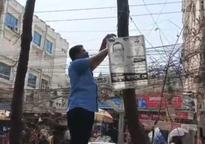 নারায়ণগঞ্জ-৫ আসনের নবনির্বাচিত সংসদ সদস্য এডভোকেট আবুল কালামের নির্দেশে শহরজুড়ে ঝোলানো তাঁর নিজের অভিনন্দন সম্বলিত ব্যানার ও ফেস্টুন সরানোর কাজ শুরু হয়েছে। আজ রোববার দুপুর থেকে নারায়ণগঞ্জ শহরের চাষাড়া, বন্দর ও সদর এলাকায় এই পরিচ্ছন্নতা অভিযান চালানো হয়।