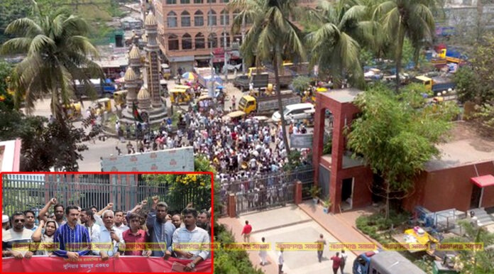 উচ্ছেদের মাত্র ৭ দিনের মাথায় আবারও রণক্ষেত্রে পরিণত করার চেষ্টা চলছে প্রাচ্যের ডান্ডি খ্যাত নারায়ণগঞ্জ শহরকে। সোমবার (২০ এপ্রিল) সকাল থেকে পুনর্বাসনের অজুহাতে শহরের প্রাণকেন্দ্র চাষাঢ়া ও নগরভবনের সামনে হকারদের আকস্মিক বিক্ষোভ ও সড়ক অবরোধে স্থবির হয়ে পড়ে জনজীবন। তবে এই বিক্ষোভের নেপথ্যে সাধারণ হকারদের অভাব-অনটনের চেয়ে ‘রাজনৈতিক উস্কানি’ ও ‘চাঁদাবাজ সিন্ডিকেটের’ মদদ দেখছেন সাধারণ নগরবাসী।